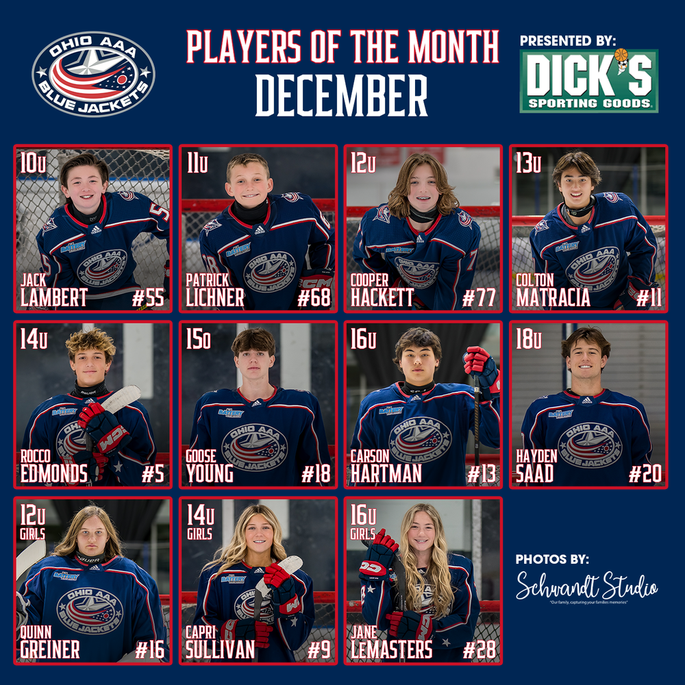 Monthly awards presented by DICK'S Sporting Goods recognize the student-athletes that represent the program's core values of process, respect, integrity, determination and excellence.